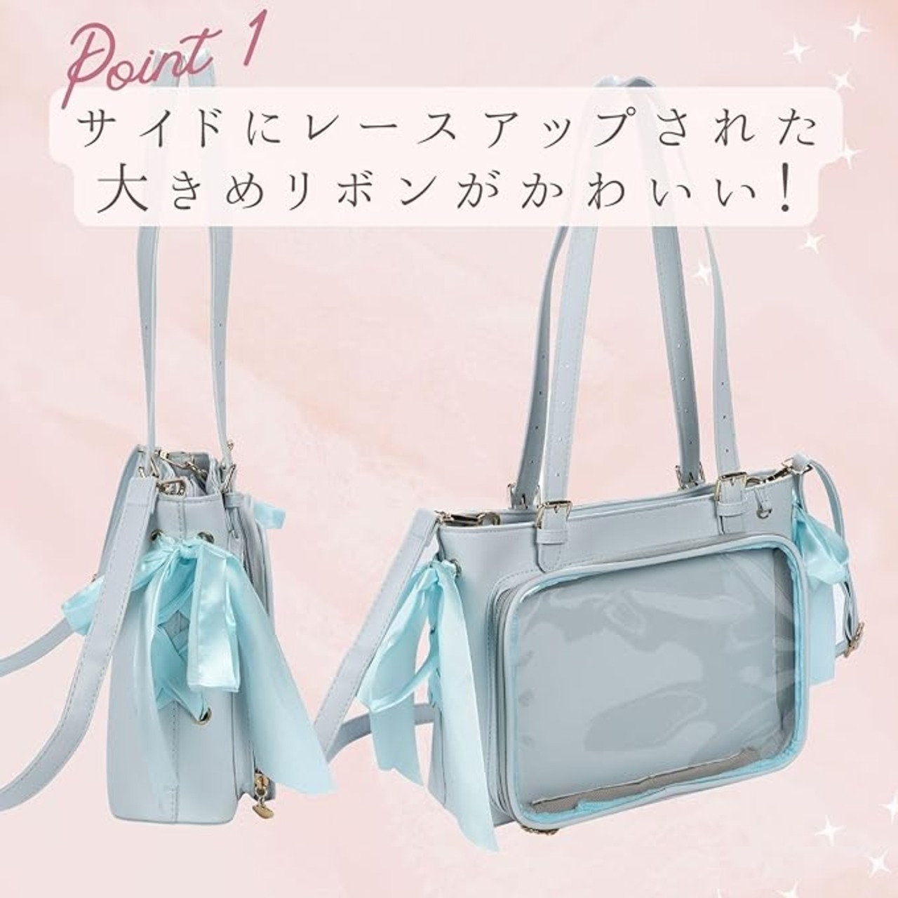 [ハルジオ] 痛バッグ 痛バ 痛バック 推し活バッグ 痛バック いたバック ブラック ホワイト シルバー ブルー レッド 黒 白 銀色 青 水色 赤 可愛い おしゃれ リボン 大容量 人気 いたばっぐ いたばっく いたば バッグ c