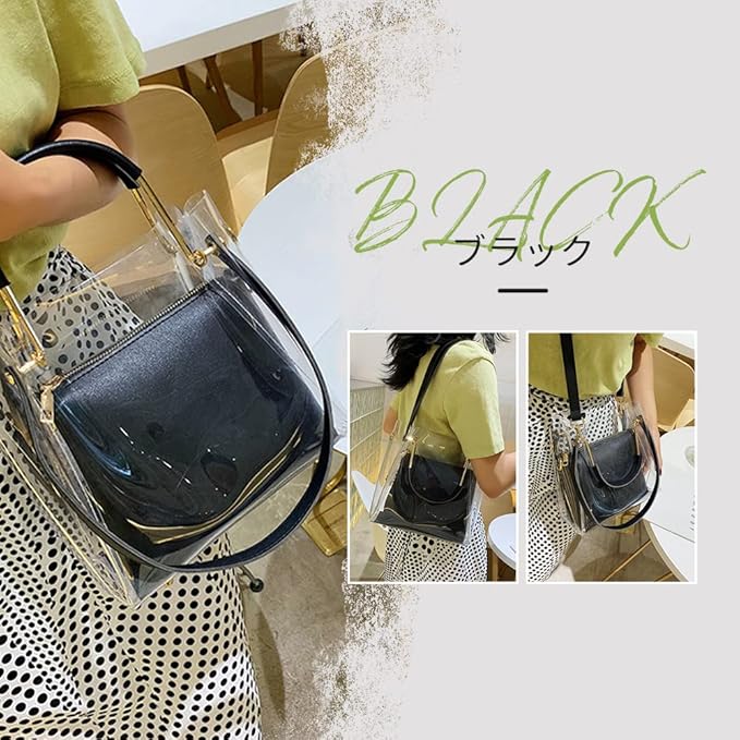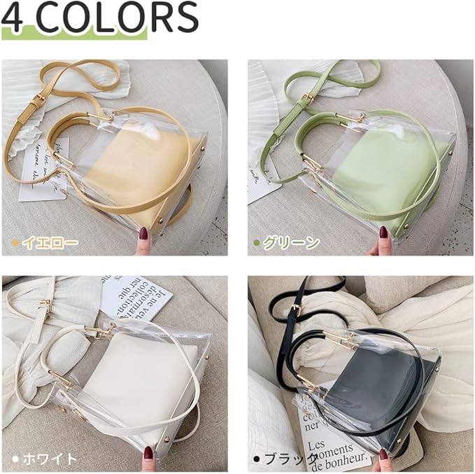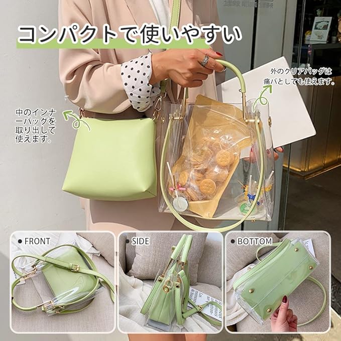[MORGEN SKY] レディース ショルダーバッグ クリアバッグ 見せバッグ 透明 ビニール PVC 痛バッグ 3way スマホポーチ 推し活 肩掛け 手提げ防水 オシャレ 無地 ポーチ付き 2点セット BAG21
