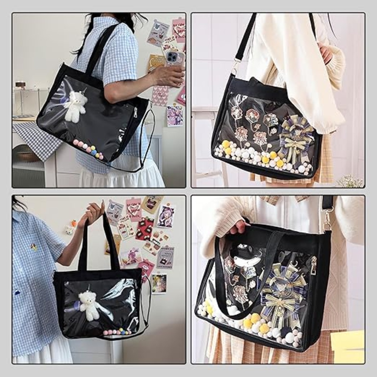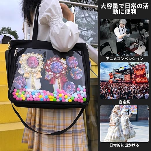 kasanidika ぬいぐるみポーチ ぬいポーチ 痛バッグ ぬいぐるみ ショルダー 持ち運び 鞄 痛バ 推し活 PVC 大容量 推し活グッズ 大きめ 見せバッグ 透明窓 斜めがけ 人形入れ 地雷 ショルダーバッグ 透明PVC 防塵 防水 a