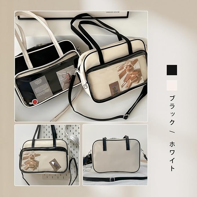 [MORGEN SKY] 痛バッグ ショルダーバッグ 見せバッグ スクールバッグ クリアバッグ 斜めがけ 3WAY 透明 合皮 ビニール ぬいぐるみ おたく 推し活 痛バ 女子 高校生 JK 制服 PU 大容量 通学