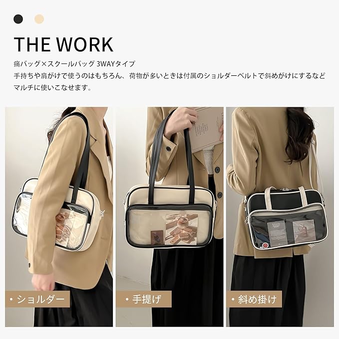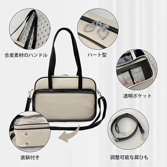 [MORGEN SKY] 痛バッグ ショルダーバッグ 見せバッグ スクールバッグ クリアバッグ 斜めがけ 3WAY 透明 合皮 ビニール ぬいぐるみ おたく 推し活 痛バ 女子 高校生 JK 制服 PU 大容量 通学 a