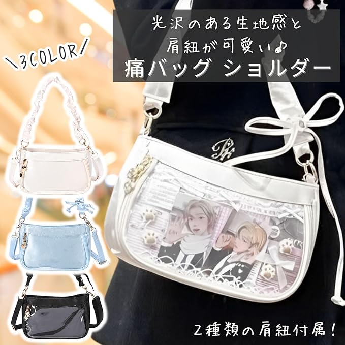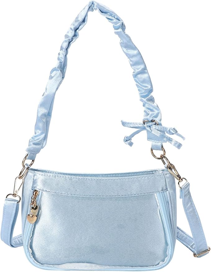 [ハルジオ] 痛バッグ 痛バ ショルダー 小さめ 推し活バッグ ミニ 痛バック ショルダーバッグ サテン ギャザー いたバック 推し活 オタ活 推し バッグ バック 可愛い 人気 いたばっぐ いたばっく いたば 黒 白 水色