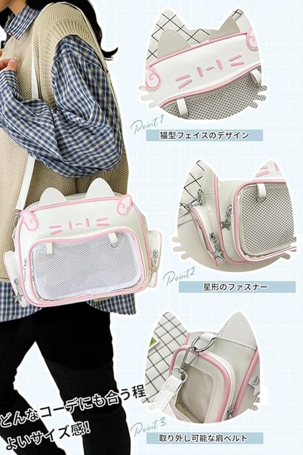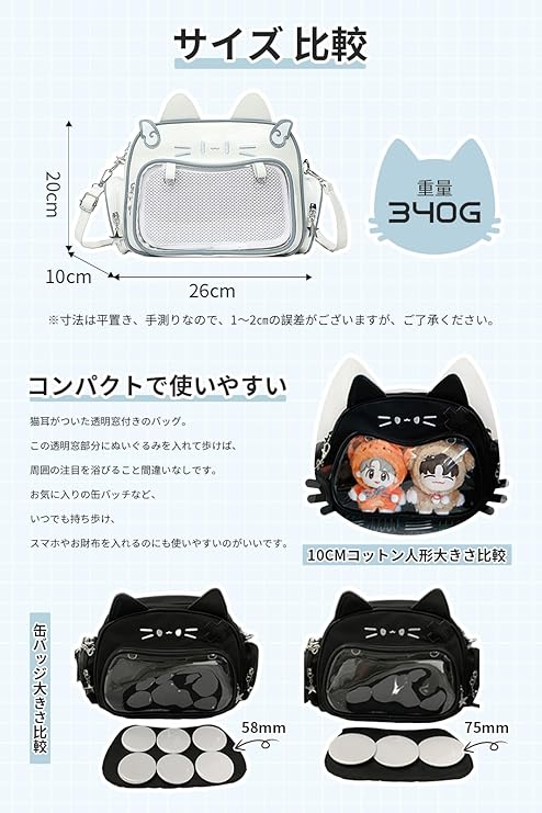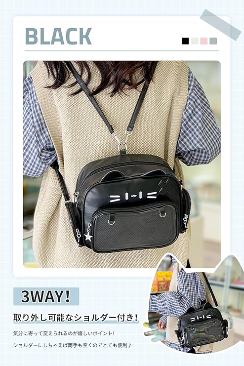 [MORGEN SKY] 痛バッグ 推しバッグ ショルダー 3WAY リュックサック 猫耳 痛バ ぬいぐるみ クリア ポーチ 斜めがけ スモール 透明 ビニール おたく 推し活グッズ コンパクト BAG898