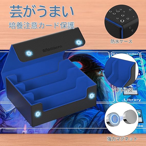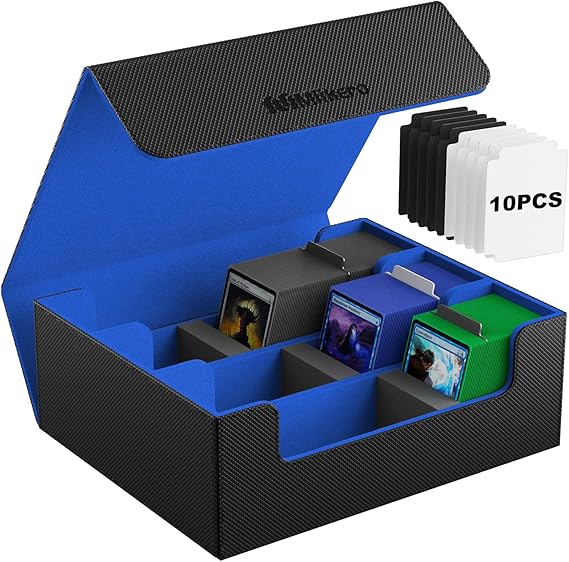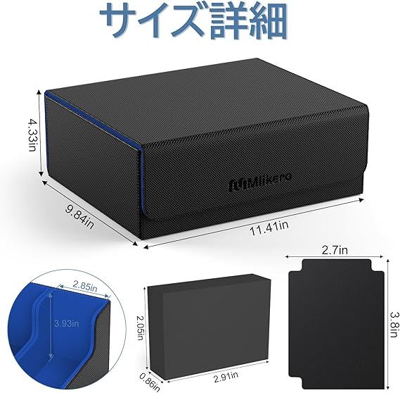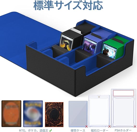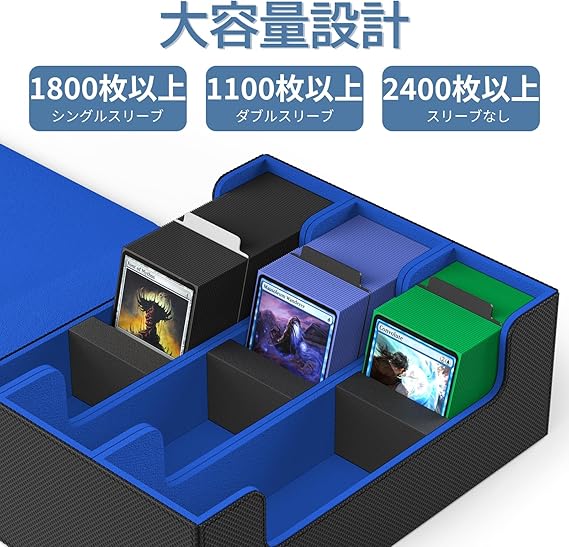 Mlikero デッキケース カードケース 大容量 1800枚収納 カードケース トレカ マグネットトレカケース ストレージボックス トレカ 仕切り10枚、フォームプラグ3個付き「遊戯王ポケカ MTG デュエマ 各種 カードゲーム に対応」(黒青) a