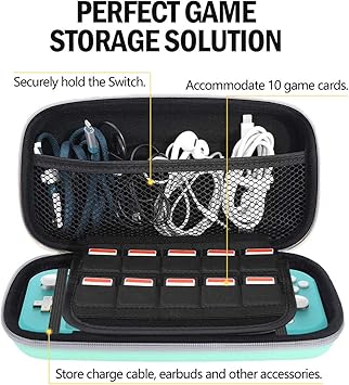 Switch Lite ケース ATiC ニンテンドー スイッチライト キャリングケース 収納バッグ EVA素材 耐衝撃 全面保護 軽量 Switch Liteコンソール/付属品 /10枚ゲームカード収納 持ち運び便利 ターコイズ a