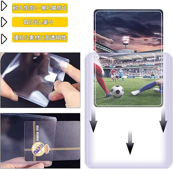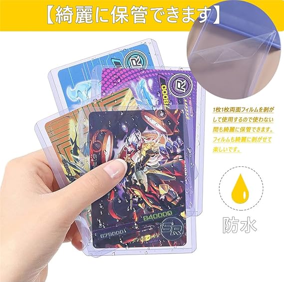 【50枚】パッケージ内容:トップローダー×50枚 サイズ(約)10.2cm×7.6cm。 新しいカードローダーには、傷を防ぐために両面に保護フィルムが付いています。 使用するときは、保護フィルムをはがすだけです。