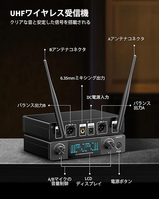 【優れた音質】 LEKATOワイヤレスマイクロフォンシステムは、プロフェッショナルダイナミックマイクロフォンとUHFプロフェッショナル安定した信号を内蔵しており、クリアでピュアなフルサウンドを拾います。A/Bマイクは15チャンネル調整可能で、15セットまで同時