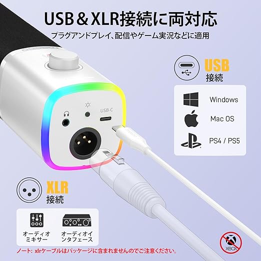 MAONO XLR/USB ゲーミングマイク ノイズキャンセリング PCマイクセット ポッドキャスト ストリーミング用 ダイナミックマイク ミュートボタン 単一指向性 YouTube 録音 ゲームチャット ライブ配信 ゲーム実況に PD100XS ホワイト a
