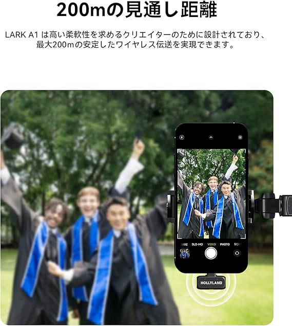 【軽量・快適、スマート録音】Hollyland LARK A1 ワイヤレスマイク送信機は、わずか8gの超軽量設計で、非常に便利です。革新的なマグネット式装着デザインで、快適に装着できます。エントリーレベル向けながら、高品質ピュアサウンド、3段階ノイズキャンセリング,最長54時間連続録音,最大200mの安定したワイヤレス伝送を実現できます。App「LarkSound」を使用して、マイクのバッテリー残量や状態を確認でき、6段階ゲイン調整機能、オートリミッター・クリップ保護機能、EQ&リバーブ調整機能