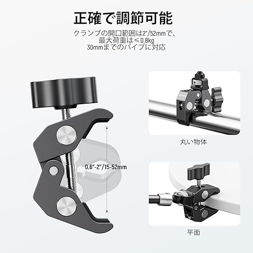 【スーパークランプ付き多関節マジックアーム】11"/28cmロゼットマジックアームクランプマウントは360°摩擦ギアジョイントで接続された2本の多関節アームを備え、DSLRカメラ、LEDビデオライトパネル、マイク、フィールドモニター(コンパチブル Atomos Ninja V)、スマホホルダー、アクションカメラアダプターなどの多彩な位置決めを提供します。スーパークランプは1/4 "と3/8"ARRI位置決め穴を介して、ロッド、ポール、テーブル、ケージ、ハンドル、三脚に接続します。最大荷重2kg