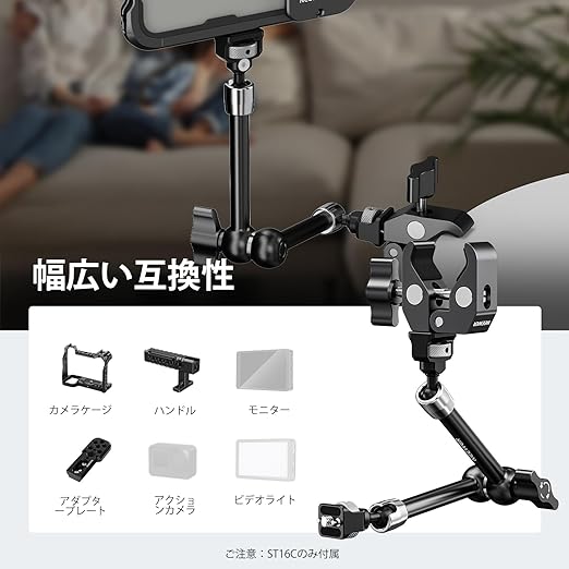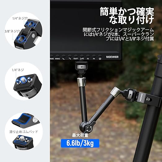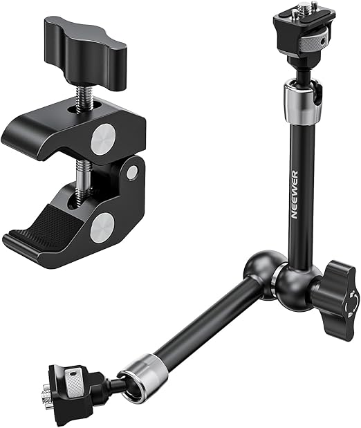NEEWER 28cm マジックアーム クランプマウント 関節式アーム カメラモニターマウント スーパークランプ/1/4"&3/8"ARRI位置決めピンと穴付き DSLR/アクションカメラ/ビデオライト用 ST16C a