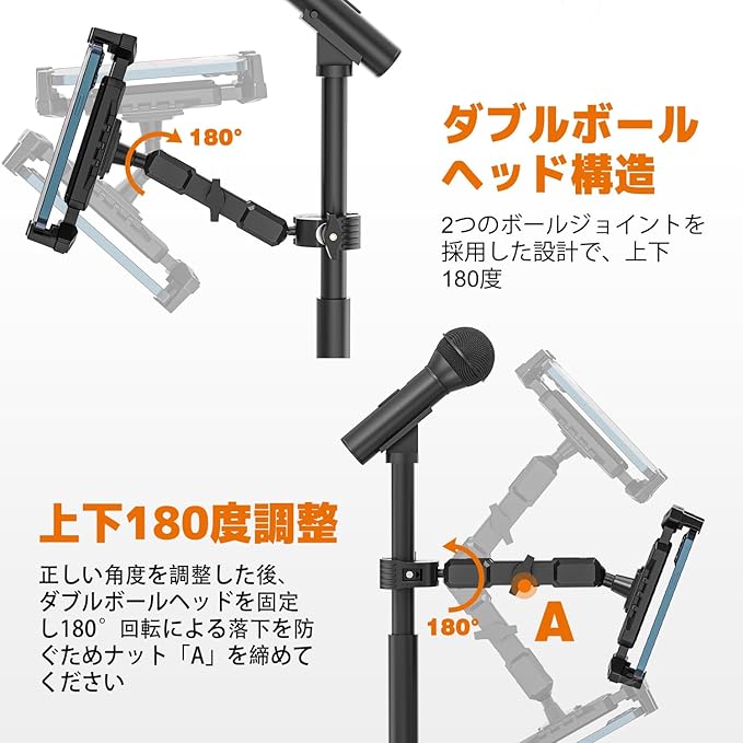 Tendak タブレットスタンドiPadマイクスタンド 360度回転 マイク音楽スタンド タブレットホルダー 超強力Cクランプ付き 4.7〜13.5インチ対応 タブレット・スマホ用 iPad mini/Air/Pro多機種対応 a