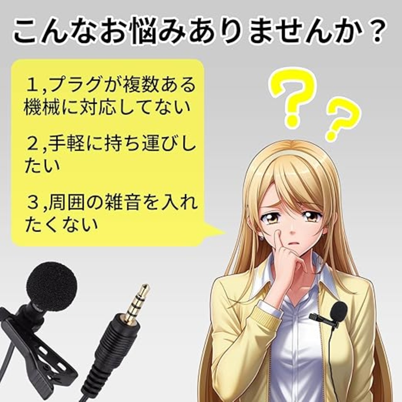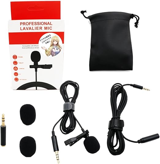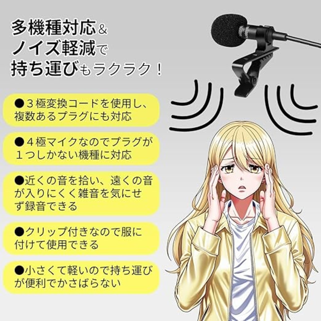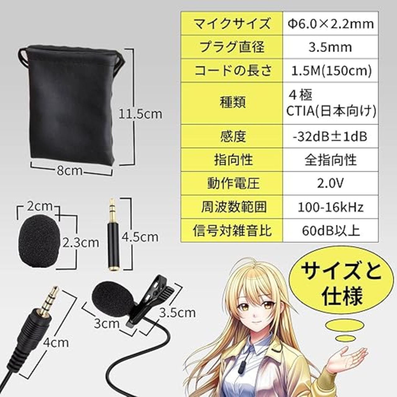 KENOU マイク ピンマイク クリップ付き 4極 3極変換 録音 音声 1.5m 動画配信 携帯電話 収納ポーチ (セット) a