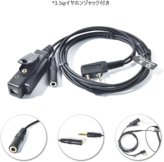【3.5φイヤホンジャック付き】別売りの3.5φイヤホンを組み合わせて、音声の送受信を行うことができます。自分の好みによって自由にインカムイヤホンを変換することができます。