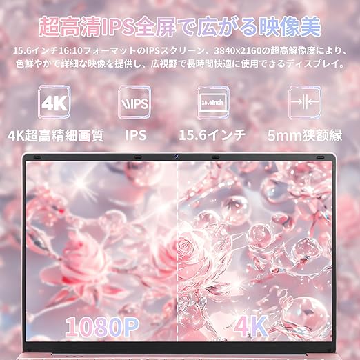 【4K UHDディスプレイ】鮮明でリアルな映像体験 15.6インチの3840×2160超高解像度ディスプレイを搭載。鮮明で色彩豊かな表示により、映画や動画鑑賞はもちろん、デザイン作業や写真編集でも細部までリアルに再現します。広視野角設計で、複数人での画面共有も快適です。