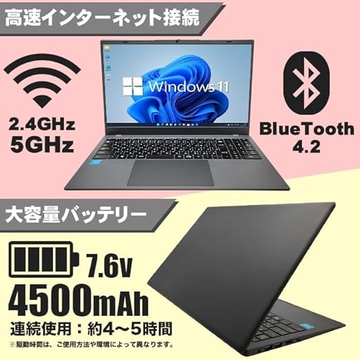 ノートパソコン JIS日本語配列キーボード PS15J 第14世代クアッドコアCPU搭載 TwinLake N150 15.6インチワイド大画面 フルHD 1080P Windows11 PCIe SSD256GB メモリ12GB USB3.0 HDMI 2.4GHz/5GHz Wifi Bluetooth 内蔵スピーカー WPS office搭載 a