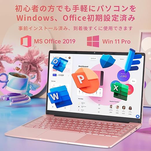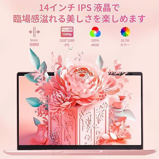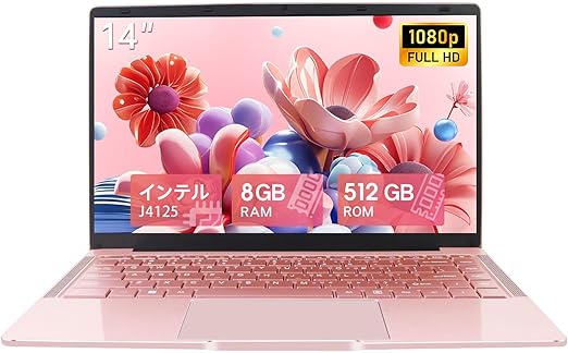 ノートパソコン office搭載 windows11 14インチ 日本語キーボードフィルム付き Celeron N4120 ノートPC メモリ8GB SSD 512GB/薄型軽量 ピンク/解像度:1920×1080p/webカメラ&無線マウス付き/初期設定済み ノートパソコン・すぐ使えるlaptop (ローズゴールド, 512G SSD) a