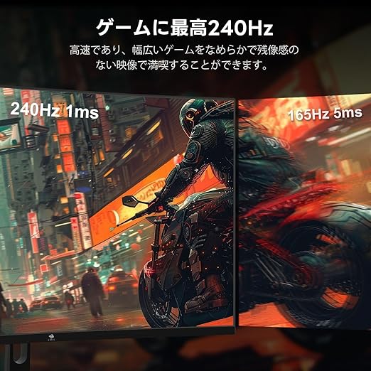 【最高の表示速度】240Hz、ゲームで激しい動きでも残像が少なく見やすい 高速であり、幅広いゲームをなめらかで残像感のない映像で満喫することができます。