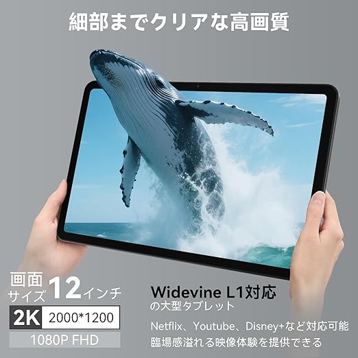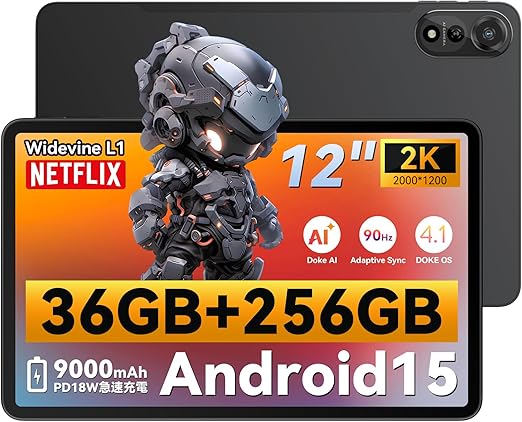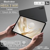 【2年保証 12インチ 2K IPS大画面】 Blackview MEGA2 Android15 タブレット 12インチ Wi-Fiモデル、DOKE AI搭載、PCモード2.0搭載、2000*1200解像度、36GB+256GB+2TB拡張、9000mAh+PD 18W急速充電、8コアCPU A733、1080P IPSディスプレ Widevine L1対応、WiFi 6+BT5.2+AIカメラ+顔認証