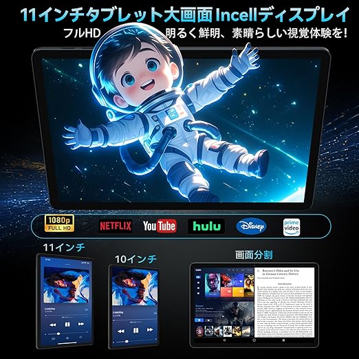 タブレット11インチ 2025高性能 Android 15タブレット 16GB+128GB+1TB TF拡張 5G/2.4GWi-Fi+4G 通話 8コア MTK8786 CPU 8000mAh+Type-C充電 In-cell IPS ディスプレイ 1080P 13MP+8MPデュアルカメラ GMS/技適/PSE認証 BT5.0/GPS/FM/OTG/顔認識/無線投影/分割画面日本語説明書 a
