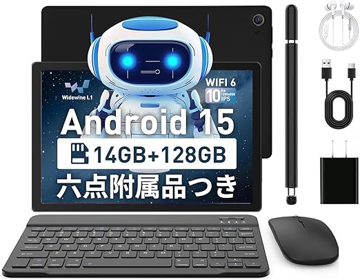 タブレット 10インチ 【2025最新 Android 15 タブレット 初登場】 高性能 8コアCPU IPS 1280*800ディスプレイ 14GB+128GB+1TB拡張 5MP/8MPカメラ Widevine L1+BT5.0+GMS認証+5000mAh 超高性價比 付属品豊富(キーボード・無線マウス・保護カバー・タッチペン・イヤホン) (c108-Android15) a