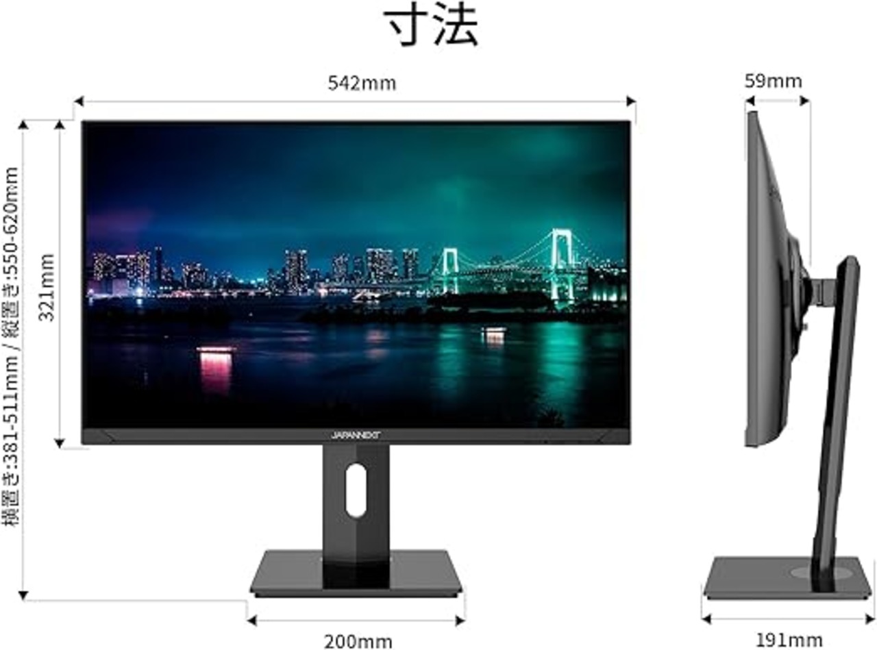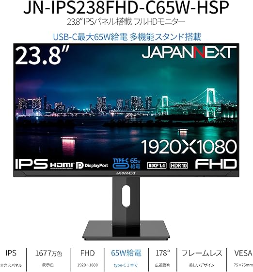 JAPANNEXT 23.8インチ モニター フルHD 1920x1080解像度 IPS ディスプレイ (HDMI/USB-C 給電 (65W) / DisplayPort/スピーカー内蔵/高さ調節/回転(ピボット)機能/ブルーライトカット) JN-IPS238FHD-C65W-HSP a
