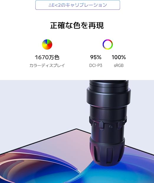 【1670万色の鮮やかでナチュラルな画像】1670万色、最大8ビットの高い色深度、sRGB 99%色域により、高品質で鮮明な画像と、より自然で明るい写真や動画を表示します。