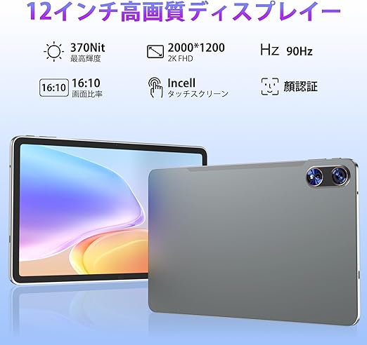 【Android 15 タブレット 12インチ 2K超高解像度】このタブレット12インチは、平均的な10.1インチ・タブレットの画面より47%大きく、178度の超広角視野を提供する。2000x1200の2K解像度は、鮮明さと電力効率の完璧なバランスを実現している。先進のTDDlおよびIncellタッチスクリーン・テクノロジーを採用したこのゲームタブレットは、より洗練されたデザインで、視覚的な鮮明さが向上しています。12インチの大画面は、大勢で映画を楽しむのにも適しています。この素晴らしい大画面で