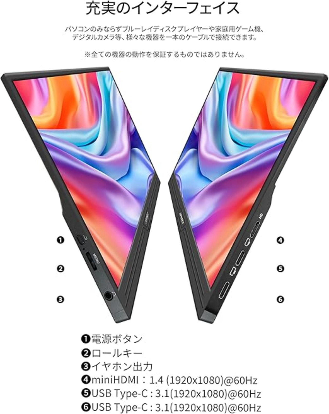 14インチのIPSパネルを搭載し、使いやすいフルHD(1920x1080)解像度に対応したモバイルモニターです。