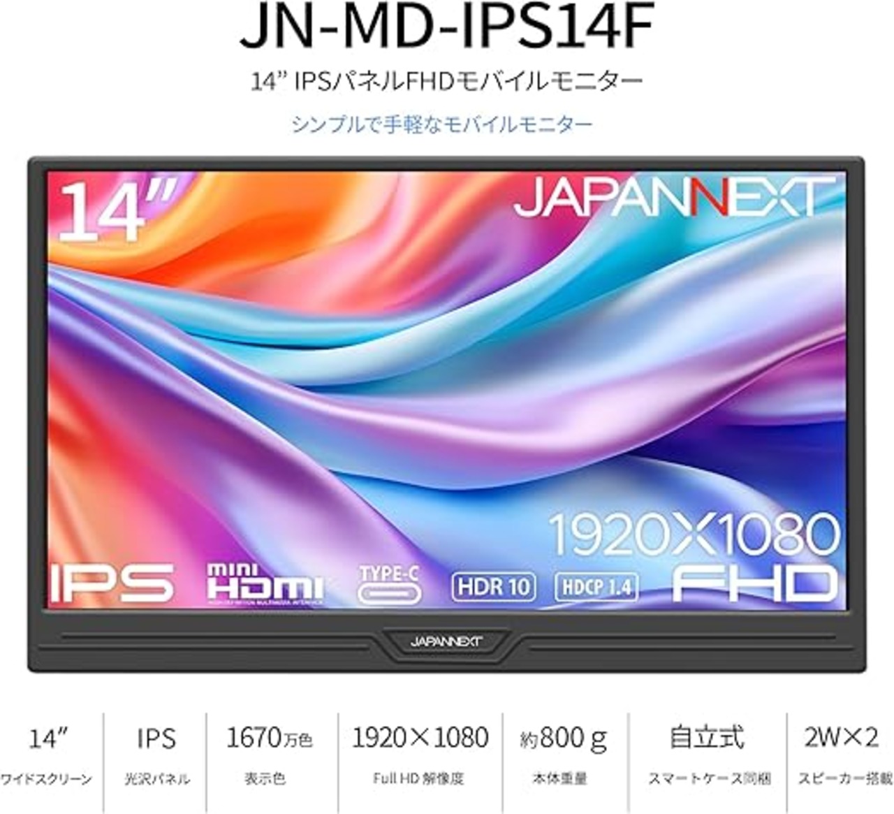 【ECサイト限定】JAPANNEXT 14インチ IPSパネル搭載 フルHD(1920x1080)解像度 モバイルモニター JN-MD-IPS14F miniHDMI USB Type-C HDR スマートケース付き Switch【2年保証】 a