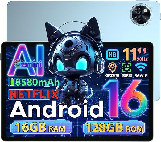 【Android16 タブレット 2025日本初登場】 DOOGEE U11 android16 タブレット 11インチ 90Hz Gemini AI アンドロイド tablet wi-fiモデル 8コア 8580mAh 16GB+128GB+2TB拡張/5GWiFi/GMS認証/WideVine L1 Netflix/BT5.0/GPS/WPS/無線投影/AIカメラ/日本語説明書付き a
