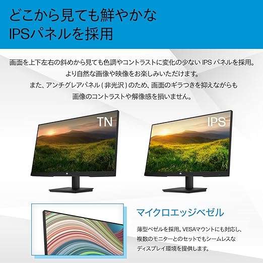 HP モニター V24i G5 23.8インチ フルHD 75Hz 5ms IPSパネル 非光沢 HDMI DisplayPort VGA AMD FreeSync 角度調整ブルーライトカット 薄型ベゼル(型番:65P59AA-AAAB) a