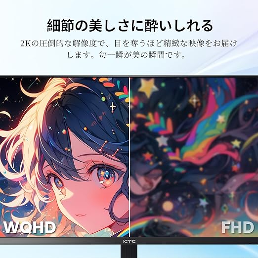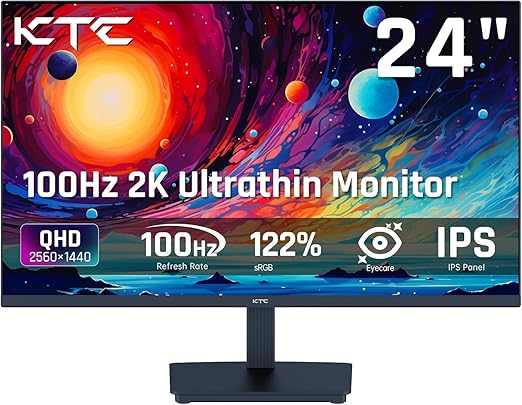 KTC 24インチ モニター WQHD(2560×1440) 100Hz IPSパネル ブルーライト軽減 FreeSync & G-Sync サポート オフィス&カジュアルゲーミング対応 122%sRGB 高色域対応 PCモニター H24T27 a