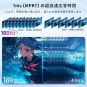 【高速リフレッシュレートと応答時間】180Hzのリフレッシュレートと1ms(MPRT)の高速応答時間により、スムーズでブレのない映像を実現します。特に激しいアクションゲームやスポーツゲームに最適で、瞬時の動きも逃しません。