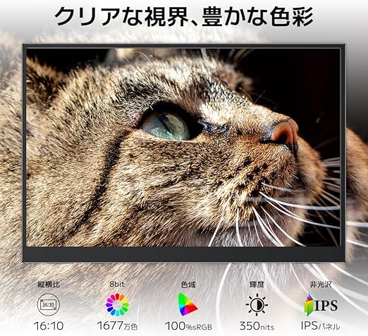 Upperizon モバイルモニター 13.3インチ 非光沢IPS FHD(1920×1200) 100%sRGB 350nits 自立型 スタンド付き VESA対応 軽量490g スピーカー内蔵 映像入力Type-C×1 MiniHDMI×1 ポータブルディスプレイ サブモニター G-133S a