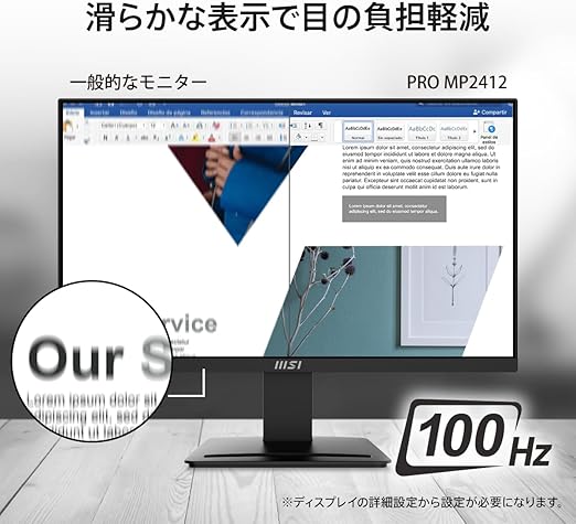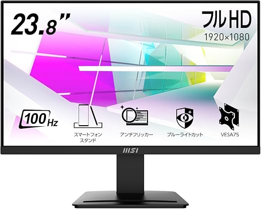 【Amazon.co.jp限定】MSI モニター PRO MP2412 23.8インチ/フルHD/VAパネル/100Hz/1ms/ブルーライトカット/アンチフリッカー/HDMI/DP/VESA対応/メーカー3年保証 a