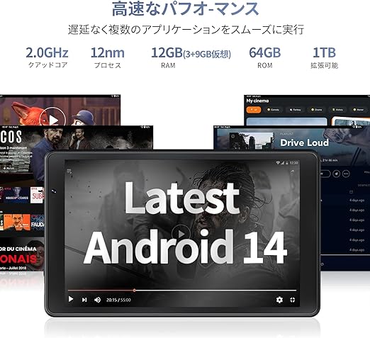【持ち運びラクラク!通勤・通学・旅行に最適な8インチ軽量タブレット】カバンにすっぽり入るわずか368gの超軽量設計片手で持てる8インチサイズだから、通勤電車の中での動画視聴や、カフェでの調べものにもぴったり!Wi-Fi環境がなくても使えるFMラジオ機能を搭載しているので、災害時や屋外キャンプでも活躍。さらにキッズモード付きで、お子様用の学習タブレットとしてもおすすめです!