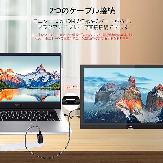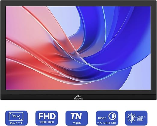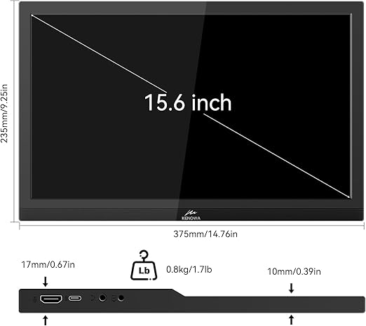 モバイルモニター 15.6インチ Kenowa FHD 1920*1080 解像度 60Hz 5ms 薄型 Type-C 標準HDMIポート/スピーカー内蔵/Computer/Laptop/Raspberry pi/PS4/XBOX/Windows 7 8 10など対応,PCポータブルディスプレイ a