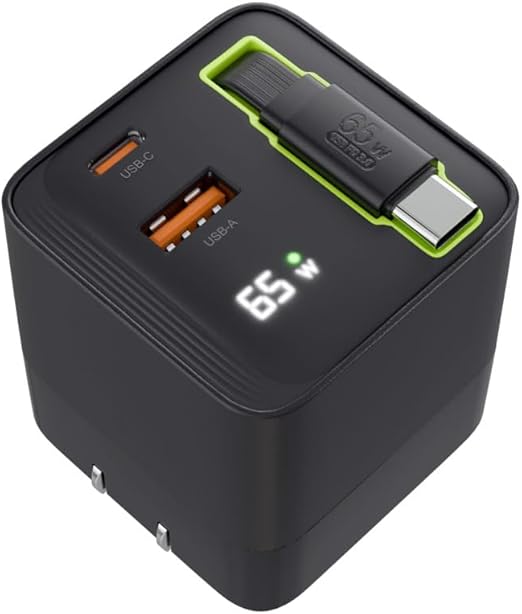 エアリア ARberos エアベロス PD65W対応 3台同時充電対応 見えるLED ワット表示 巻取り式80cmケーブル内蔵 AC充電器 パワフル 旅行 出張 ノートパソコン スイッチ SD-AC65CCA a