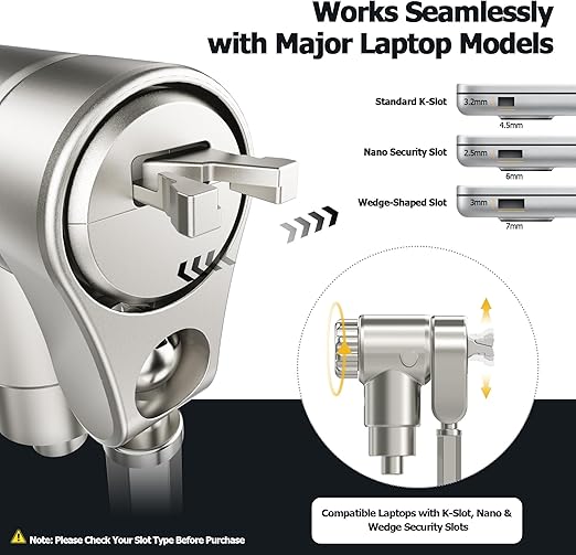 [] ユニバーサルノートパソコンセキュリティ:Kensington K-Slot、Nanoスロット、Wedgeスロットなど主要セキュリティスロットに対応した3-in-1多機能設計。あらゆるブランド・モデルのデバイスを確実に保護します。
