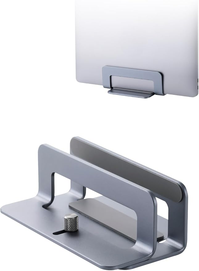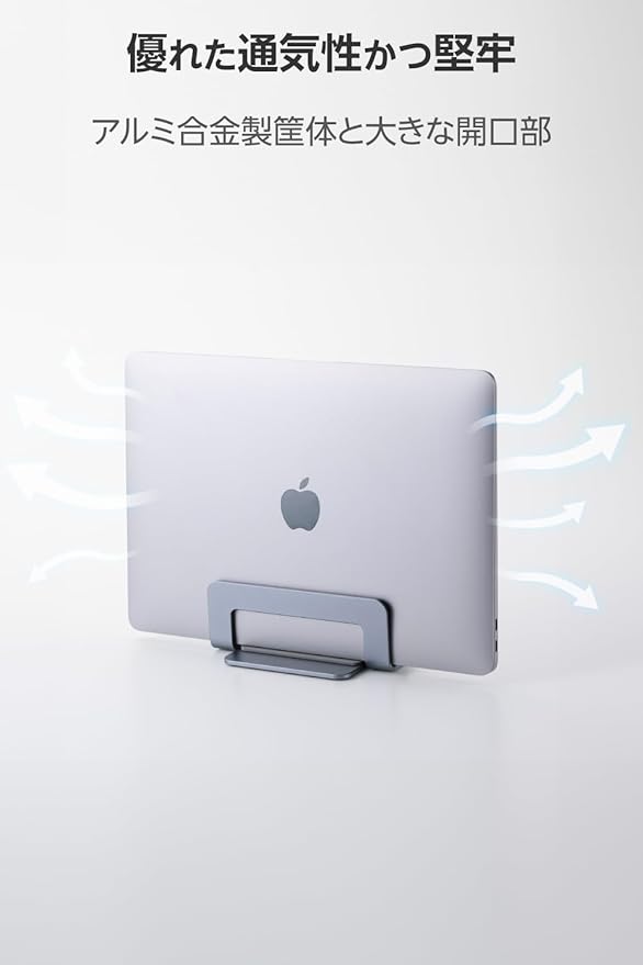 サイズが小さく省スペースなため、机の上を広々活用できるノートパソコン・タブレット用の縦置きスタンドです。