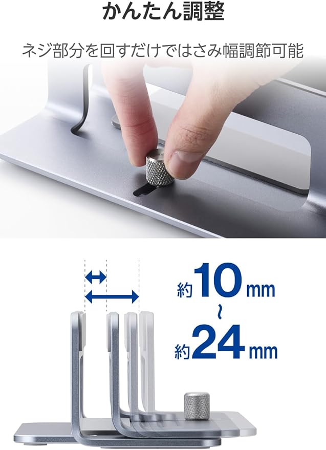 エレコム ノートPCスタンド ~15.6インチ対応 1台収納 縦置き 幅調整可能 滑り止め アルミ合金 シルバー PCAWLTSV04SV a