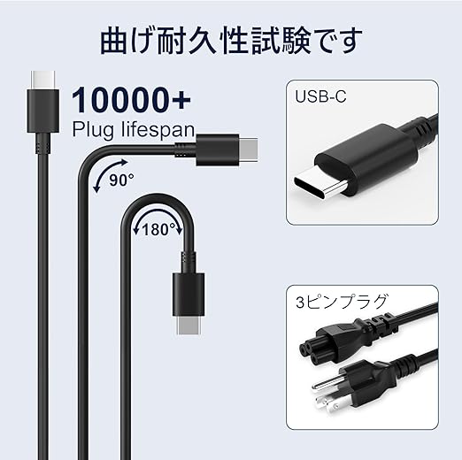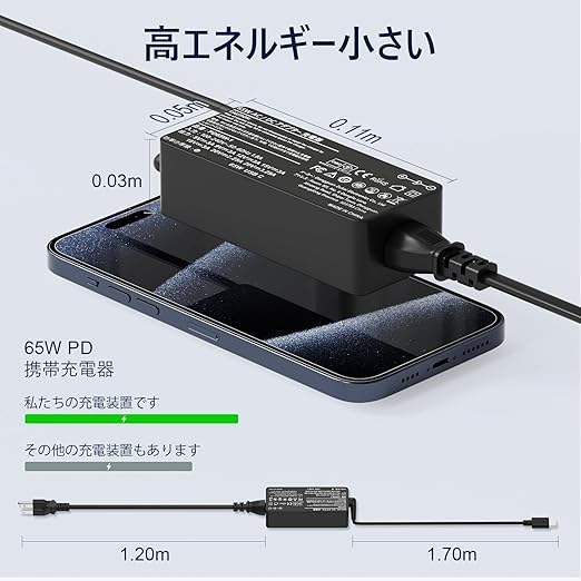 【幅広い互換性】本製品はType-C充電インターフェースのノートパソコンやラップトップ及びタブレット、スマートフォン、ゲーム機などに対応できる65W USB-C 充電器です。主な対応機種:MacBook pro, MacBook Air, Lenovo ThinkPad, Lenovo Yoga, VAIO Pro, NEC LAVIE, NEC Chromebook, HP Spectre, ASUS ZenBook, ASUS Chromebook Flip, Acer Spin, Acer