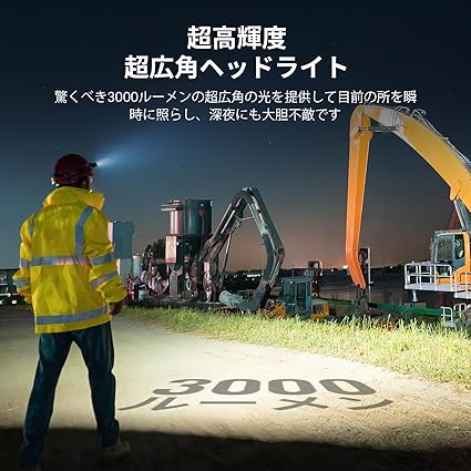 [高輝度・長航続時間]:最大明るさは3000ルーメン、照射距離は最大約160メートルで、夜の散歩や暗い場所での活動にも十分対応できる高輝度ヘッドライトです。また、満充電で最大20日間の連続使用が可能で、頻繁な充電の必要