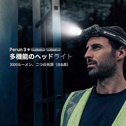 OLIGHT(オーライト) Perun 3 LED ヘッドライト 充電式 懐中電灯 ヘルメットライト フラッシュライト head lamp ledライト 白&赤 3000ルーメン 強力 180°調整可能 IP68防水防塵 軽量 センサー機能 アウトドア 登山 作業用 夜釣り (ブラック) a