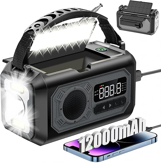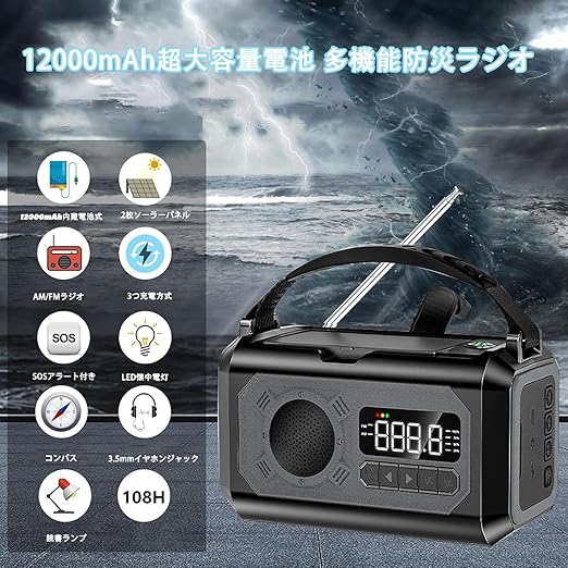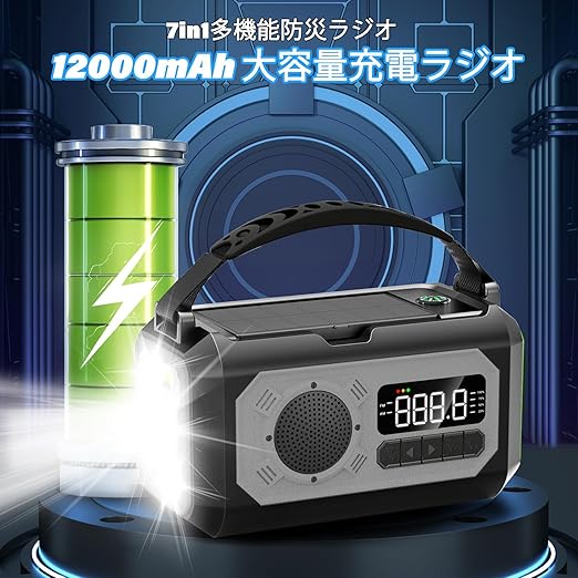 【12000mAh電池内蔵】防災ラジオ ソーラー多機能ラジオ 手回しラジオ ラジオライト 充電ラジオライト 懐中電灯 読書ランプ付 SOSアラート付き 充電式 5V 3Aスマホに快速充電可能 防災ライト AM/FM携帯ラジオ 自動選局&手動選局 コンパス USB充電 停電対策 防災グッズ イヤホンジャック付き 照明器具 携帯充電器 地震 津波 震災 台風 火事などの緊急に対応 (グレー) a
