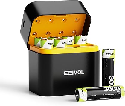充電電池 単三 3000mWh 急速充電器付き 充電式単三リチウムバッテリー 1.5V 8本入りセット 1600回以上循環使用可能 超長持続時間 自然放電抑制 2.5h LED充電インジケータ 磁気設計 充電器の組み合わせ 電池収納 日本語取扱説明書付き 2000mAh a