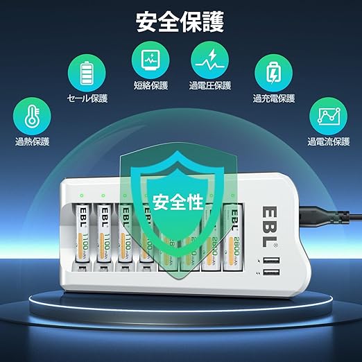 EBL 電池 充電式 充電器セット単3 単4 電池8本 充電器+単三電池+単四電池セット ニッケル水素/ニカド充電池に対応 充電池充電器セット a