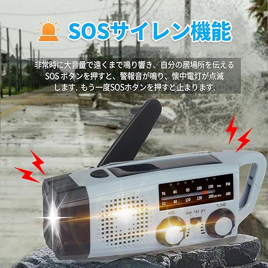 「防災士推薦」 防災ラジオ 多機能 フック掛け型 携帯式ラジオ 手回し ソーラー充電対応 SW/AM/FM SOSアラート付き 2000mAh 懐中電灯 地震 津波 台風 緊急対策 防災グッズ ライトグレー a