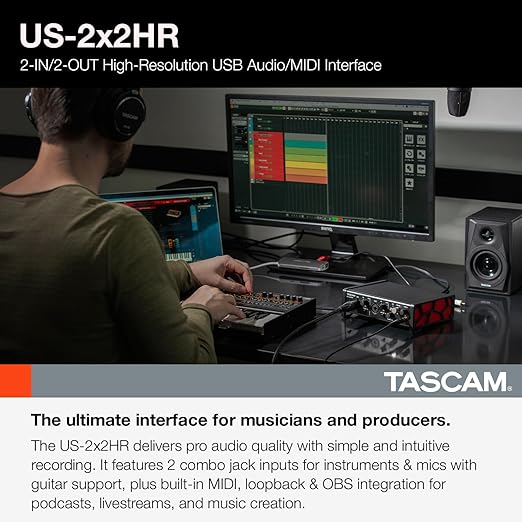 TASCAM(タスカム) US-2X2HR 2Mic, 2IN/2OUT 24bit/192kHzハイレゾ USBオーディオ/MIDIインターフェース Youtube 音楽制作 生配信 DTM a